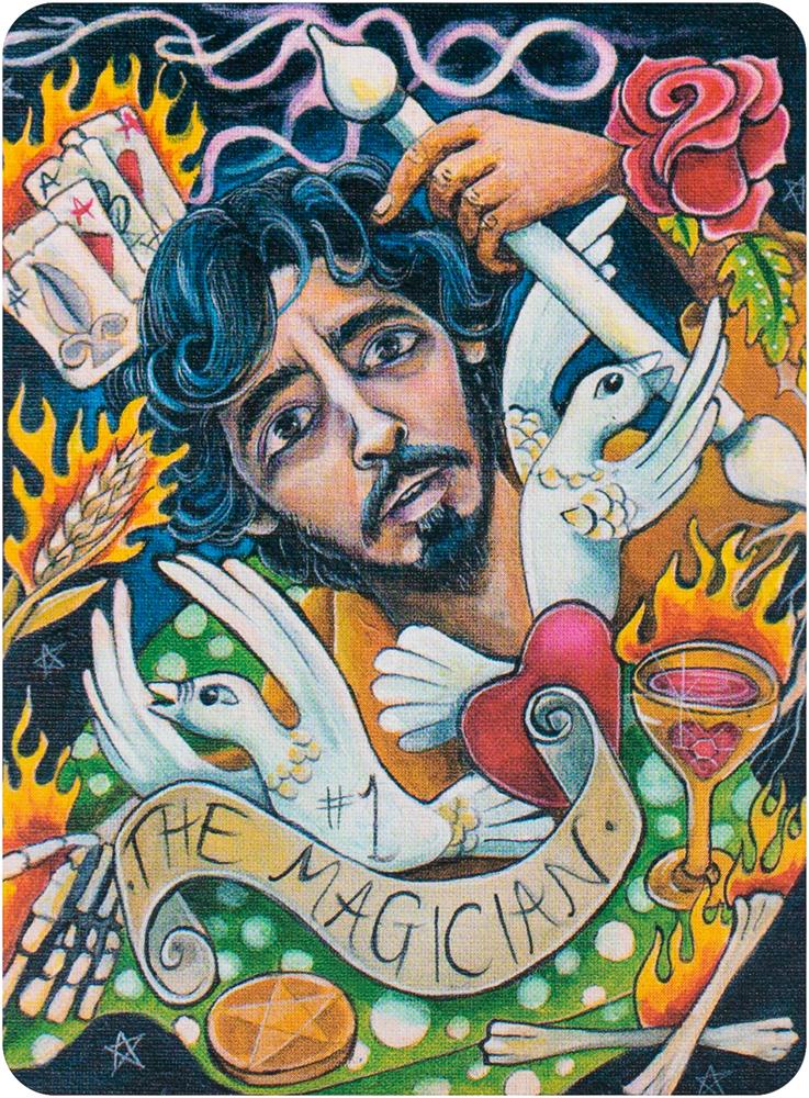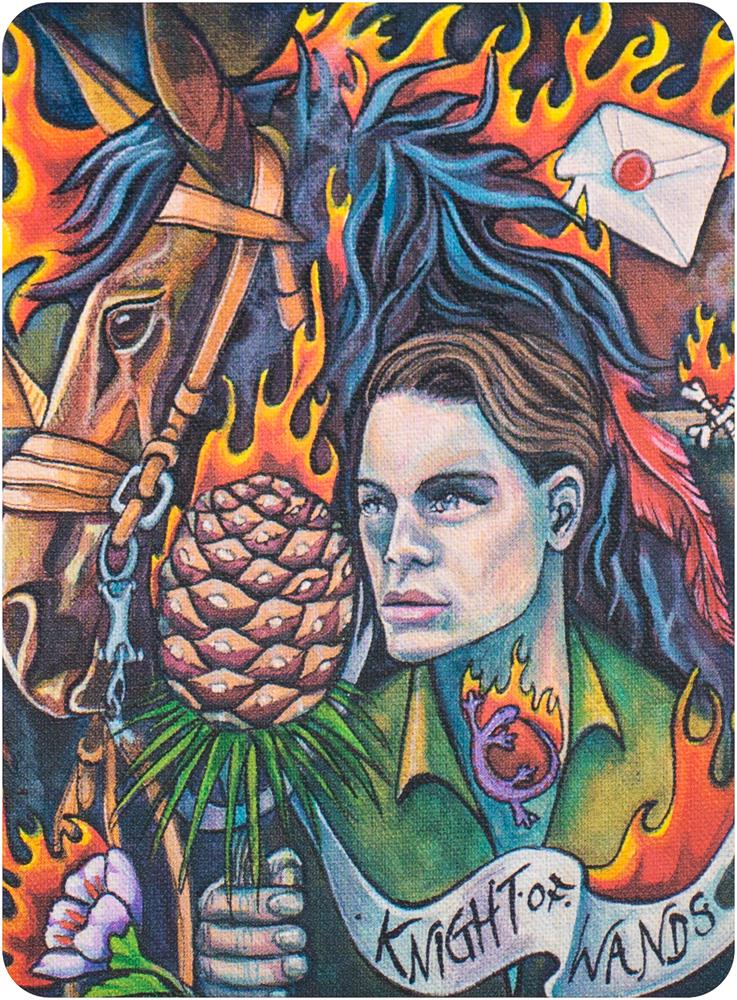 Roused by old-school tattoo flash and Outsider art, Bonefire Tarot, 2nd edition, brings you 78 energetic hand-painted Tarot cards gathered with a cozy, fireside companion book to blaze a path for the intrepid seeker as they set out on a journey toward spiritual enrichment.
