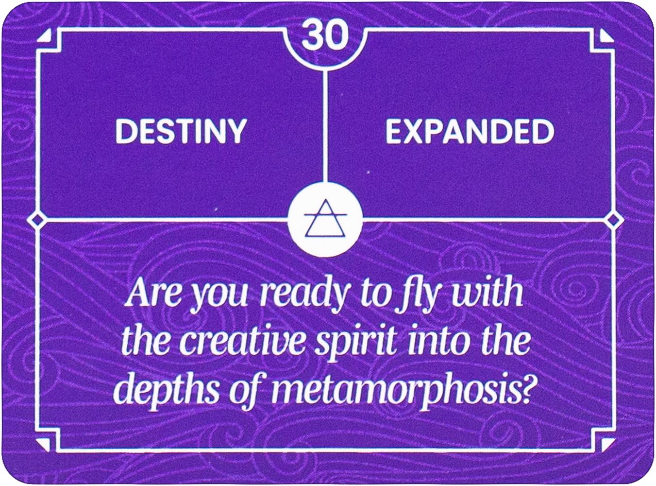 This deck is made up of one stunning hand-painted picture (featuring a young wisdom holder surrounded by the simple wonders of nature) divided into forty cards labeled 1–40. Complete the puzzle intuitively with the images alone, or lay them out in order with numbers facing up, then turn the cards over to reveal the full picture. The images on each of the cards are symbolic and work on their own when viewed separately from the full picture.
