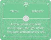 By not taking life too seriously, and being grounded and present, your inner serenity-lightness of being will lighten and activate truth and peace within others. This card deck is about activating seven sacred-human embodiments: divine will, omniscience, universal love, epiphany, forgiveness, truth, and grace, and then living as a divine offering, embodying a love of life itself.