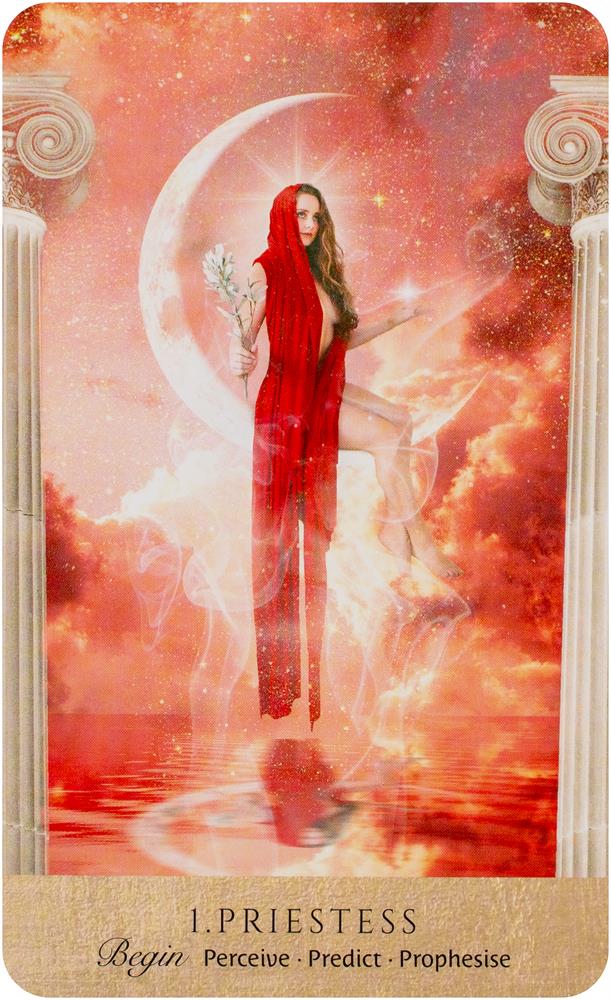 Know Thyself and See All Here, on the threshold of wisdom, you can commune with ancient seers, reclaim miracles and free the future. Here, your questions invite guidance, magic and activations. Here, you can experience a remembering that brings you home to the temple within. This exquisite oracle set is a portal to clarity and understanding. Shuffle the deck to invoke the eternal priestess, choose your cards and welcome wonder, healing visions and sacred empowerment. May the mysteries of the oracle open your intuitive senses, self-awareness and inner mystic. —Suzy Cherub