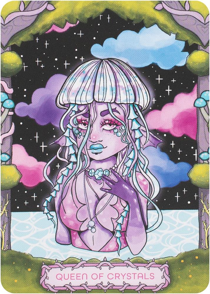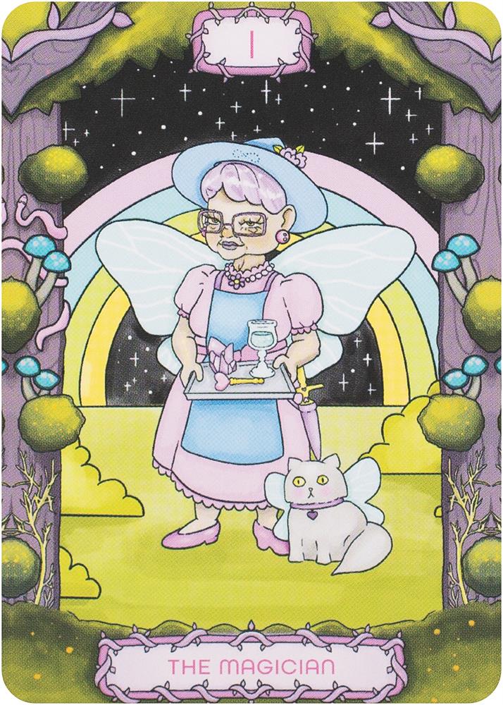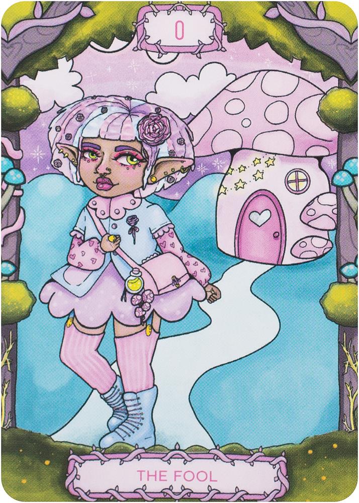 Enter the enchanted forest with Sweet Forager's Tarot. This 78-card tarot deck explores the traditional tarot structure through a whimsical and colorful lens, approaching spirituality with a sense of wonder and charm. The cards follow The Fool's adventure along the tarot card path, telling the stories of his meetings with each of the major and minor arcana cards.