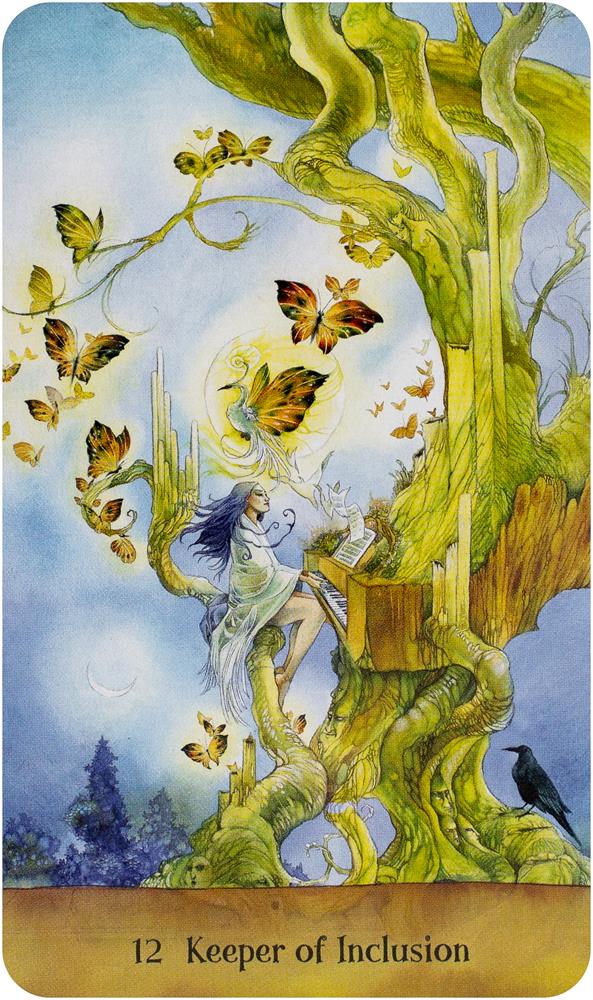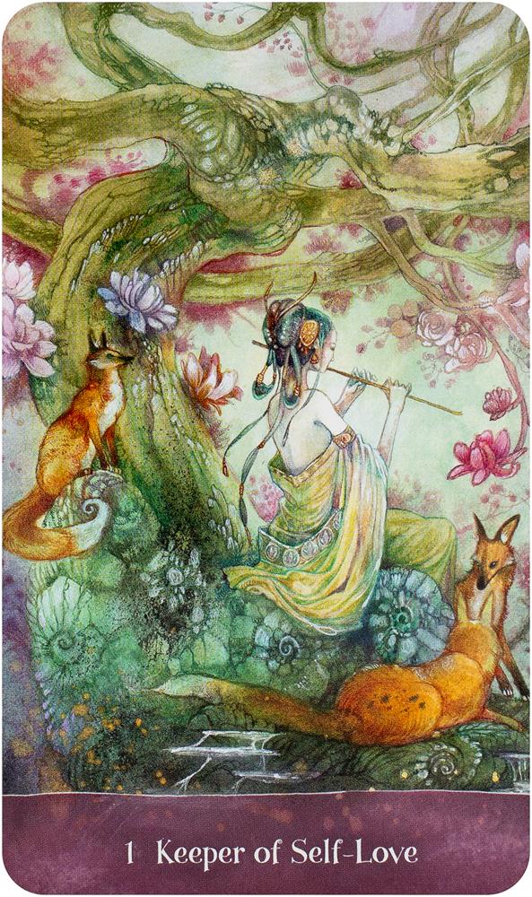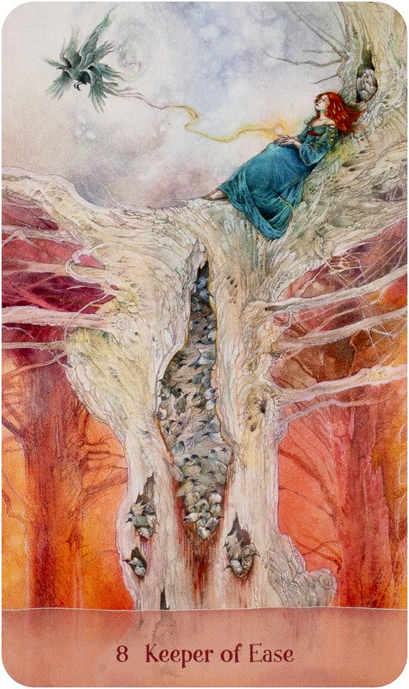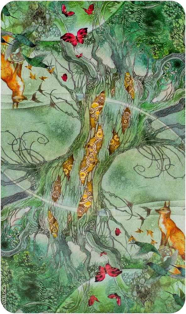 Long ago, before trees were used for their pulp and fiber to bind our stories, they were story protectors of a different kind. As legend and druids can tell you, there are places on the planet where the veil between worlds is thin, and the trees were guardians of these sacred spaces. During that age, if one was lucky, one might encounter a door in the trunk of a tree, known as a duirwaigh, a portal between magical worlds. The contents of this oracle were entrusted to me from a Tree Keeper in Lapland who guarded the ancient groves. The Tree Keeper gifted me her legacy book. Tree Keepers Oracle is derived from that tome. Tree Keepers Oracle includes 44 gold* gilt-edged cards, 108-page lushly illustrated guidebook, and organza drawstring pouch. *Please note that the product description on the box back states the cards have green edges, but the card edges are actually gold.