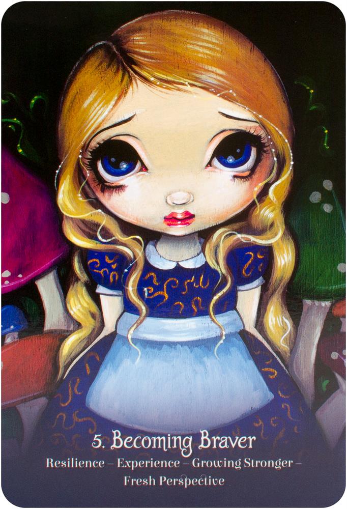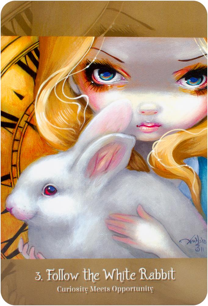 Welcome to this whimsical, thoroughly delightful oracle filled with the wit and wisdom of Wonderland. Inspired by Alice's most famous insights and adventures, you'll discover beings whose messages will help you find your way through the rabbit holes, labyrinths, pools of tears, mad tea parties and unjust courts of life.