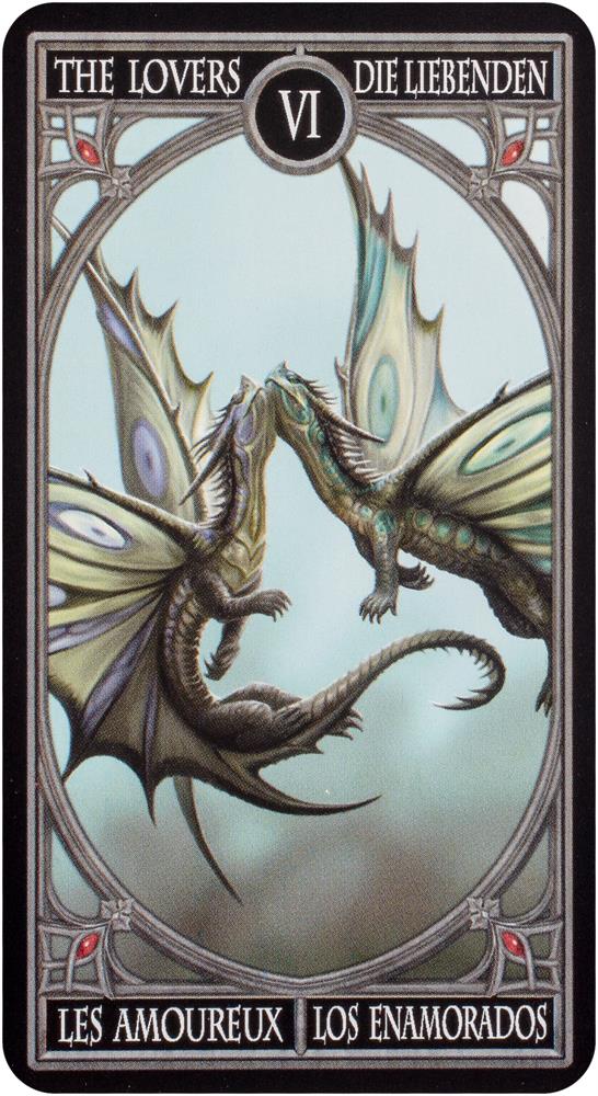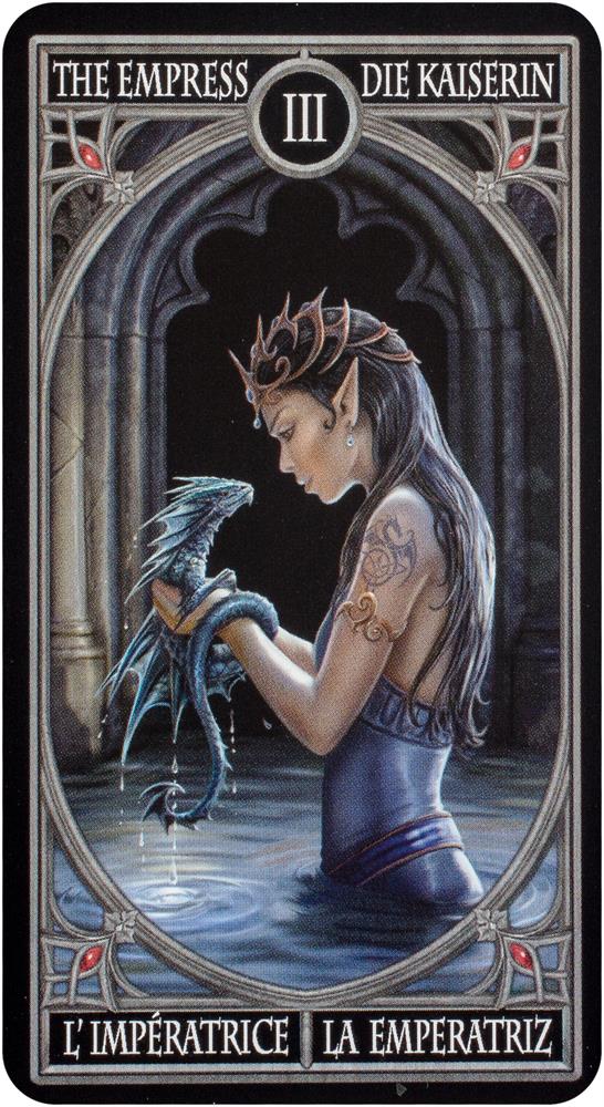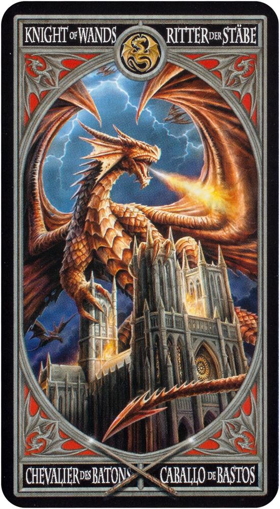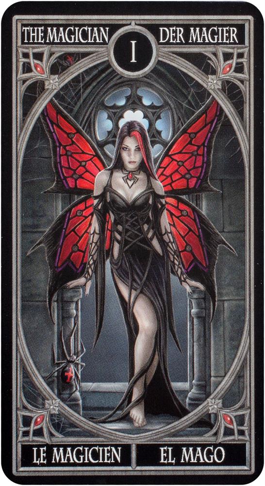 Renowned worldwide for her breathtakingly beautiful fantasy artwork, Anne Stokes delights fans yet again with this gorgeous tarot deck. This exquisitely crafted deck offers a compelling gothic twist on the traditional Rider-Waite-Smith suits. The wands are themed to mighty dragons. Cunning vampires have replaced the cups. Skeletons stand in for pentacles, and the swords have become angels. Use this inspiring tarot to explore strange magical worlds, call upon inner strength, understand dark urges, and test the limits of your imagination. Boxed deck (21/2 x 41/2) includes 78 full-color cards and instruction booklet.