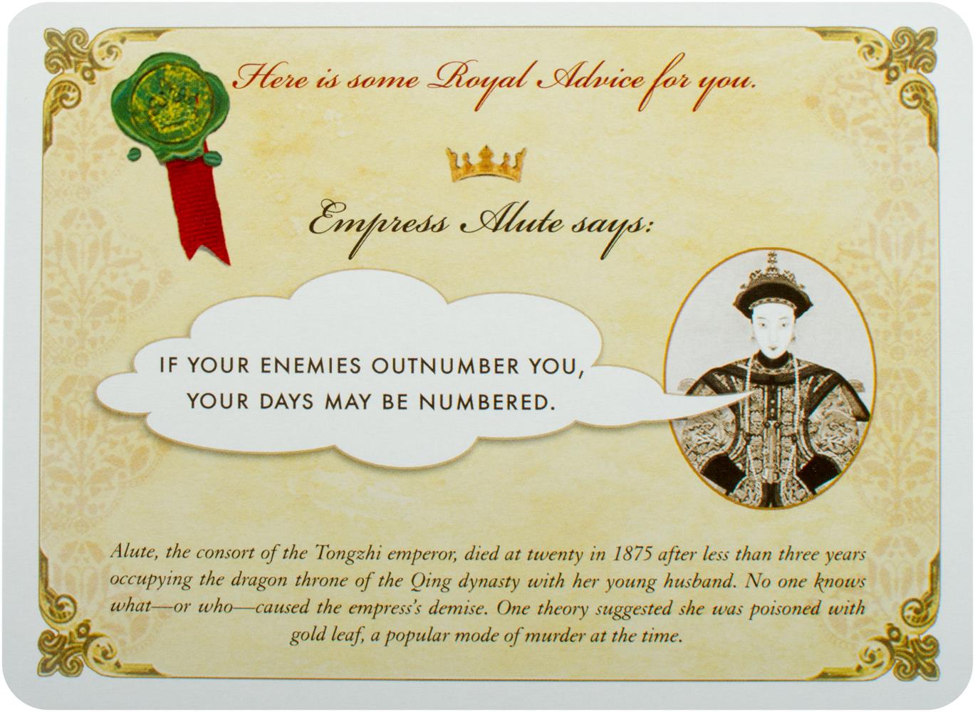 Royal advice from the likes of Cleopatra and Anne Boleyn is dispensed with scintillating wit and historical wisdom on topics ranging from romance to career ambitions. To consult their majesties, simply choose a card and your special message will be revealed. The 40 oversized cards are illustrated by Kris Waldherr and come packaged in deluxe, hinged box. A perfect gift for all your “frenemies.”
