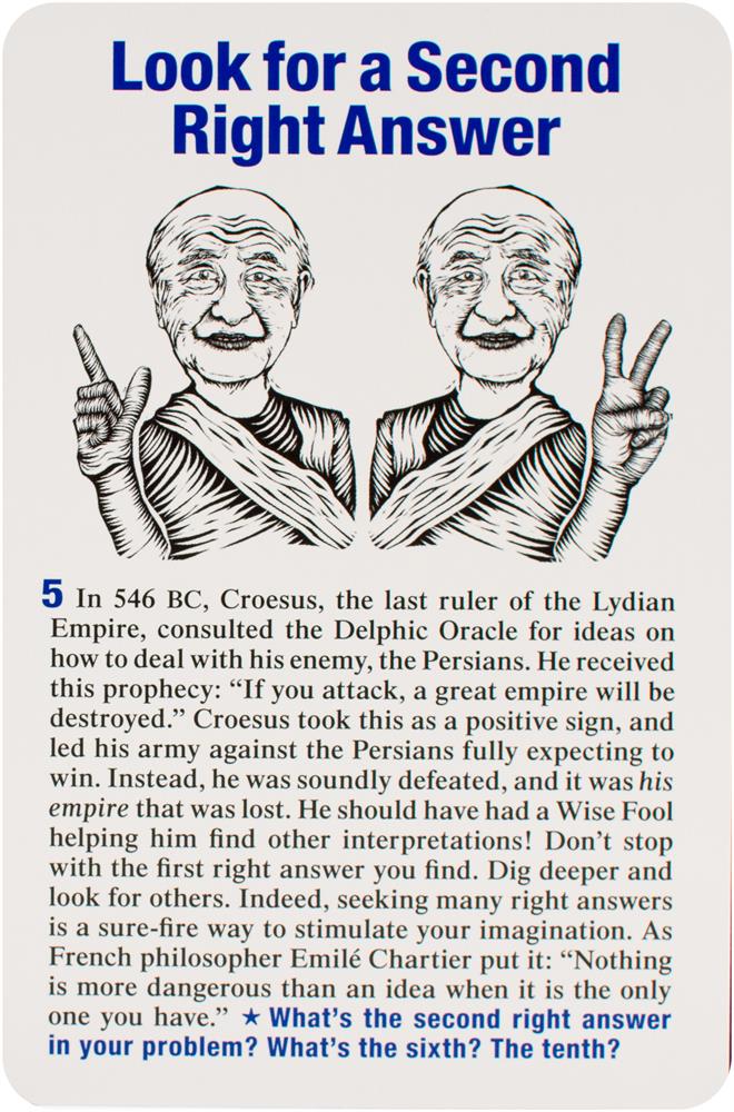 Ask the Wise Fool presents fresh, new ideas and inspiration along with some tried and true wisdom from previous Creative Whack decks. Roger von Oech’s products have enriched millions of minds around the world. He is the author of the classic A Whack on the Side of the Head and the popular Creative Whack Pack. He is also the creator of the award-winning Ball of Whacks.