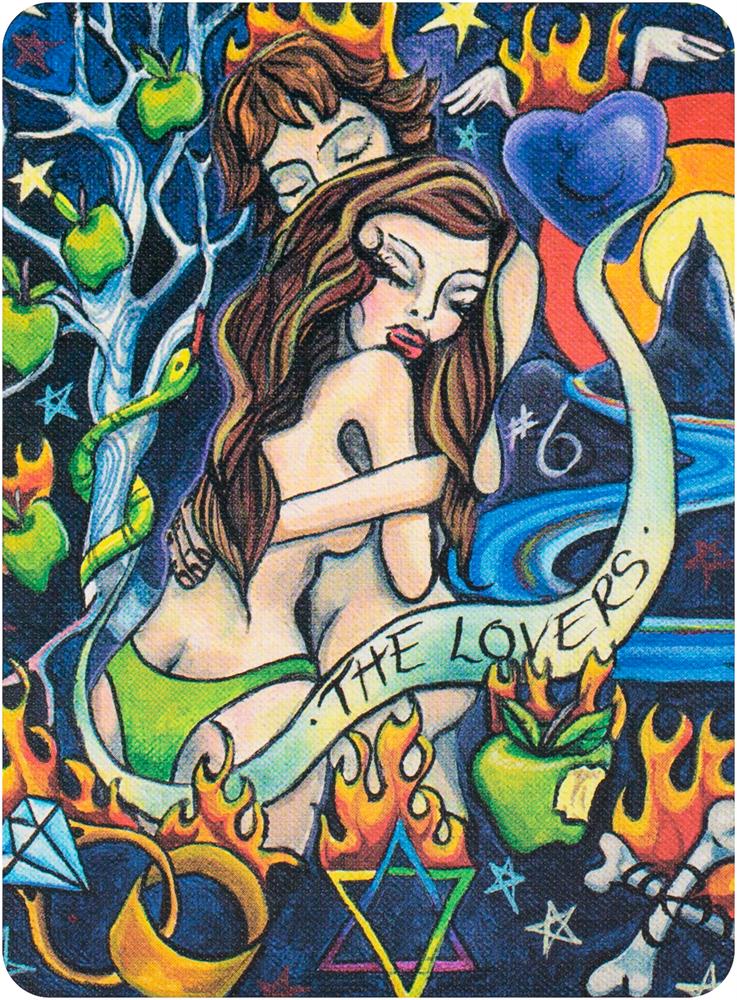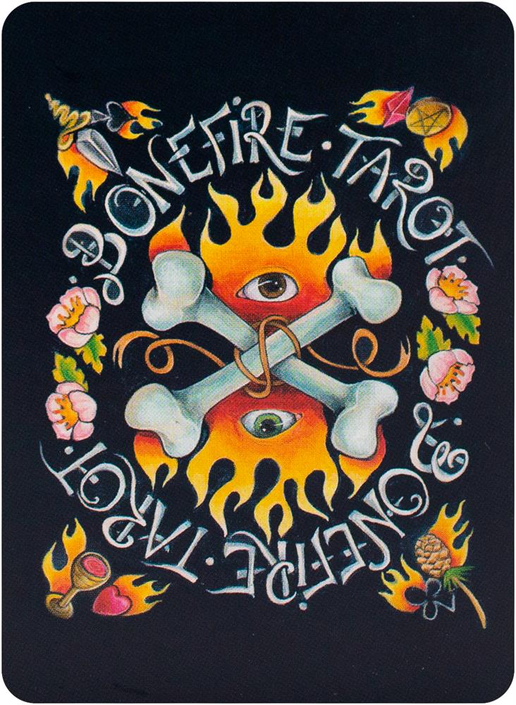 Roused by old-school tattoo flash and Outsider art, Bonefire Tarot, 2nd edition, brings you 78 energetic hand-painted Tarot cards gathered with a cozy, fireside companion book to blaze a path for the intrepid seeker as they set out on a journey toward spiritual enrichment.