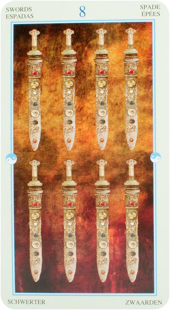 The magic, the spell and the poetry of China. These beautiful and delicate images tell of ancient China and speak of love, of melancholy, of illusions and joy: the shades of meaning that signal human emotions. They enable us to identify with the character and the scene depicted. Carried on the winds from the East, this Tarot is an anthem to the beauty of the soul.