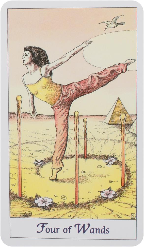 The pen and ink artwork, colored with muted pastel create a deck full of imagery that is both appealing and accessible to all tarot readers. For each of the 78 cards, the booklet by Norbert Lösche, provides interpretations on the individual level, the community, and the cosmos