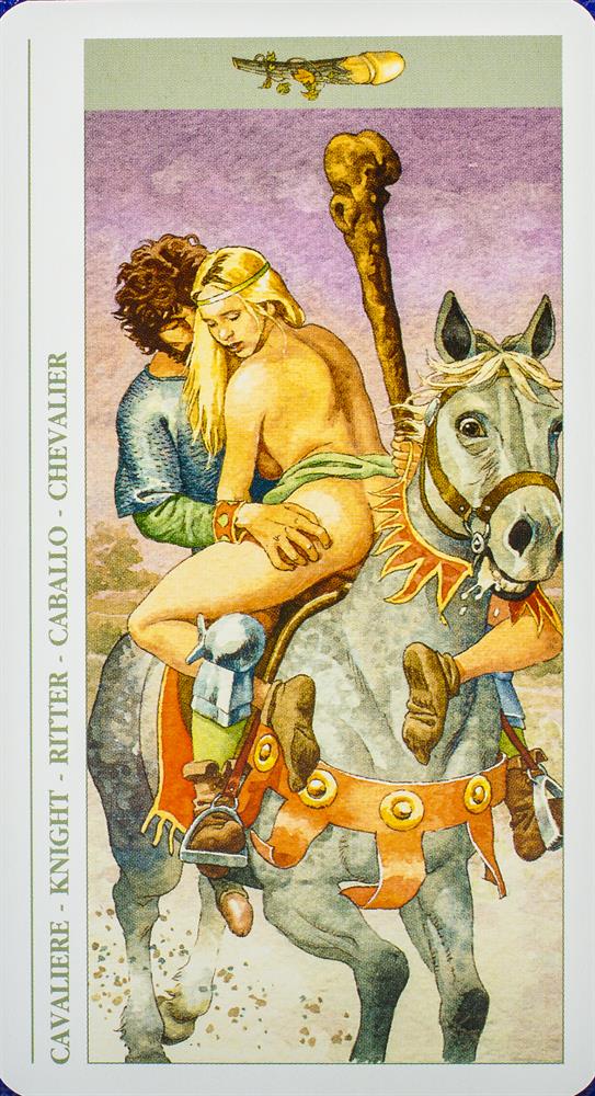 Pamela Colman Smith's artwork was pumped up with vibrant colors by Frankie Albano. The deck was originally published in 1968 and went out of print just a few years later. There was sufficient demand for this deck so U.S. Games Systems re-issued a facsimile deck from the original in 1991 and it has remained a staple for tarot collectors since. The colors are bright with lots of purples and greens