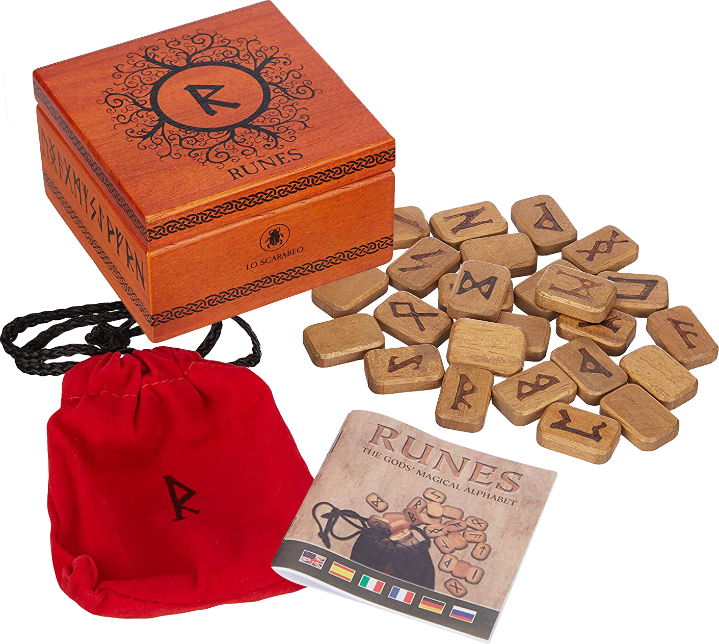 25 runes in quality wood, with instructions box size 110 x 110 x 70mm