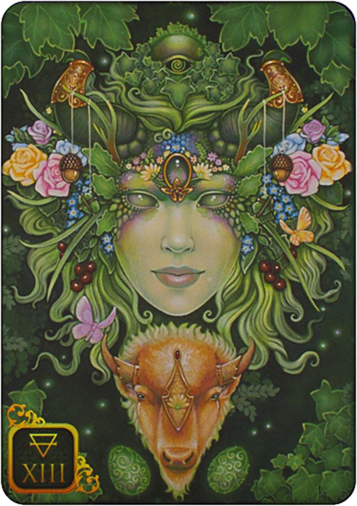 A deep oracle deck of ancient Wisdom. Elena Albanese, through the guidance of Sarah Perini, has created a Goddess themed oracle deck. Each card is like a temple, containing and accepting the timeless power of the Goddess in her many facets, along the passing and turning of the Wheel of the Year.
