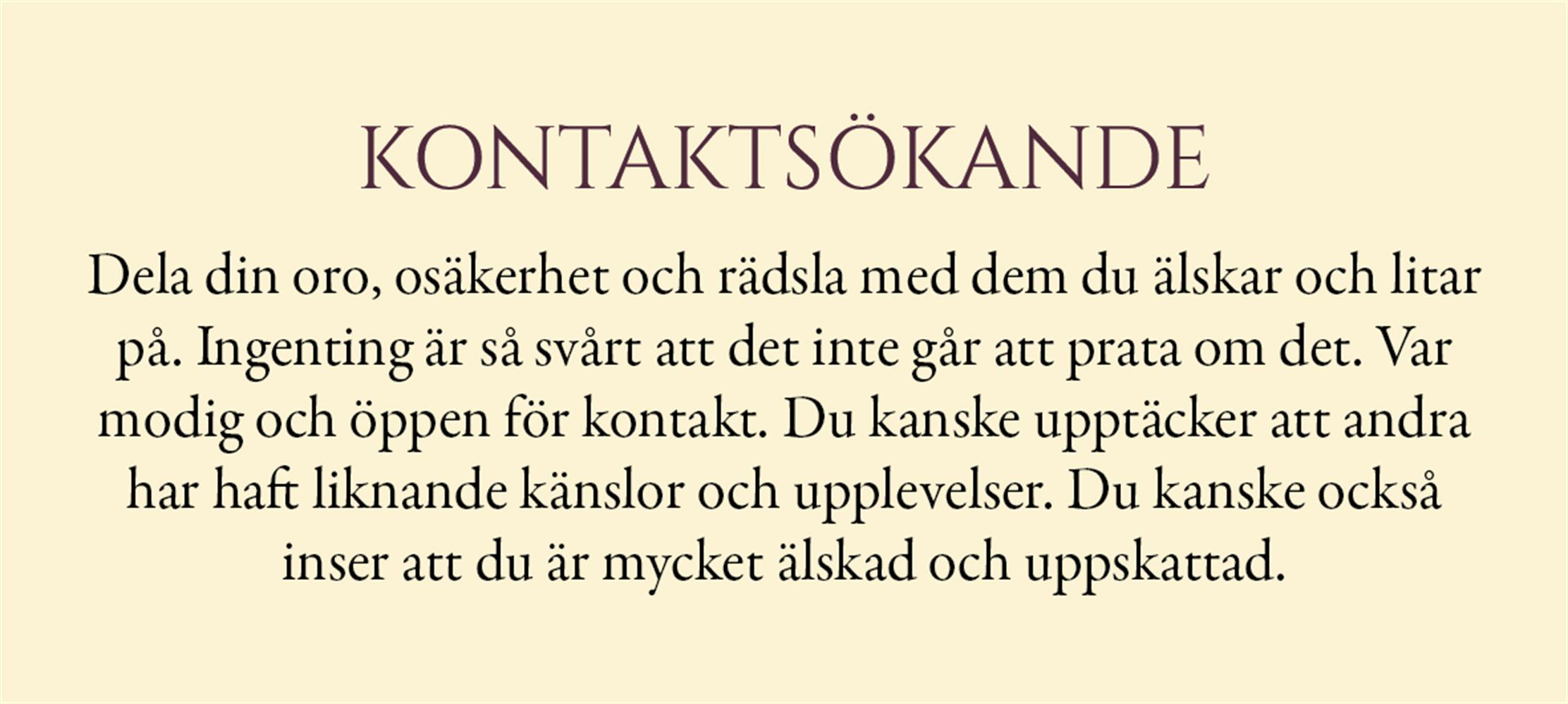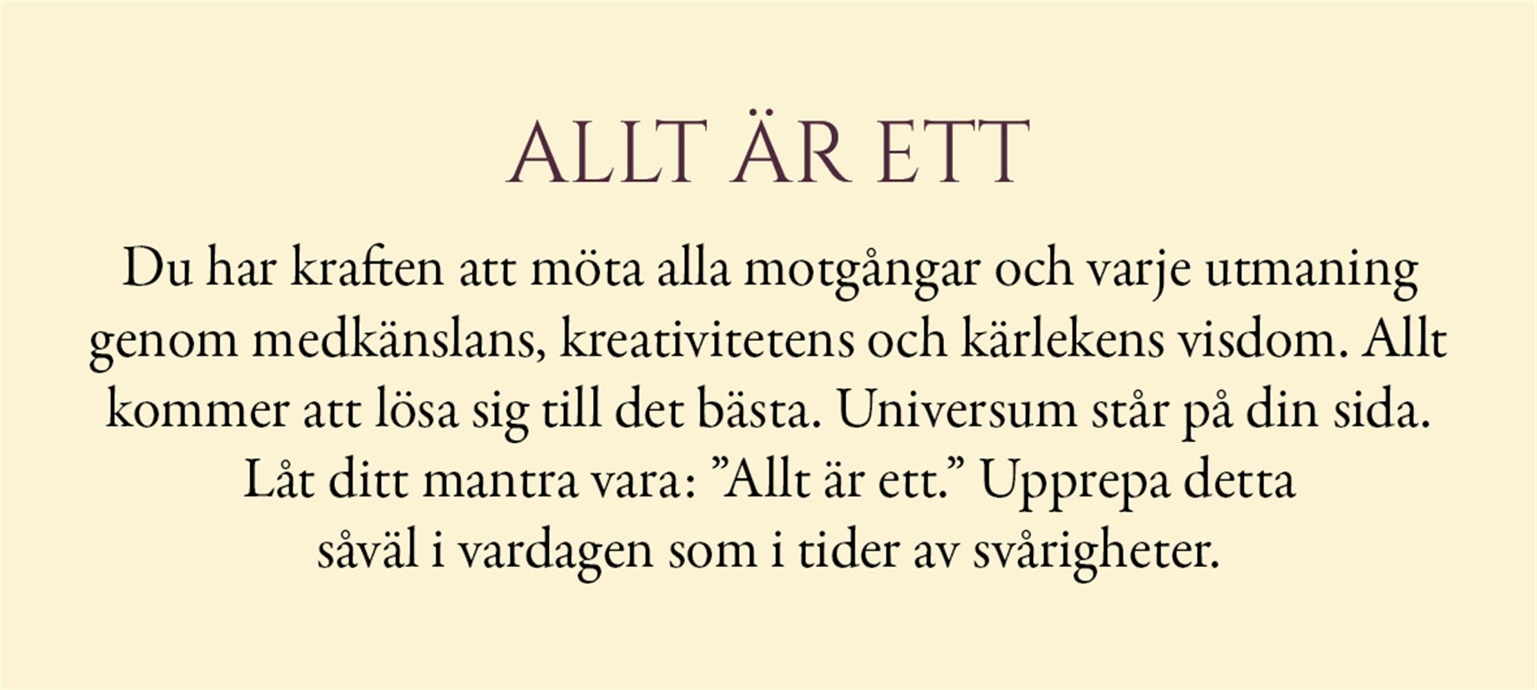 Med dessa insiktskort önskar jag att du kan få inspiration och glädje och se var du just nu står i ditt liv. De flesta korten är positiva, men en del gör att vi måste titta djupare inom oss själva, vilka blockeringar vi sitter fast i och behöver bearbeta. Dra ett kort när du känner att du behöver få lite inspiration och insikter i ditt liv.
