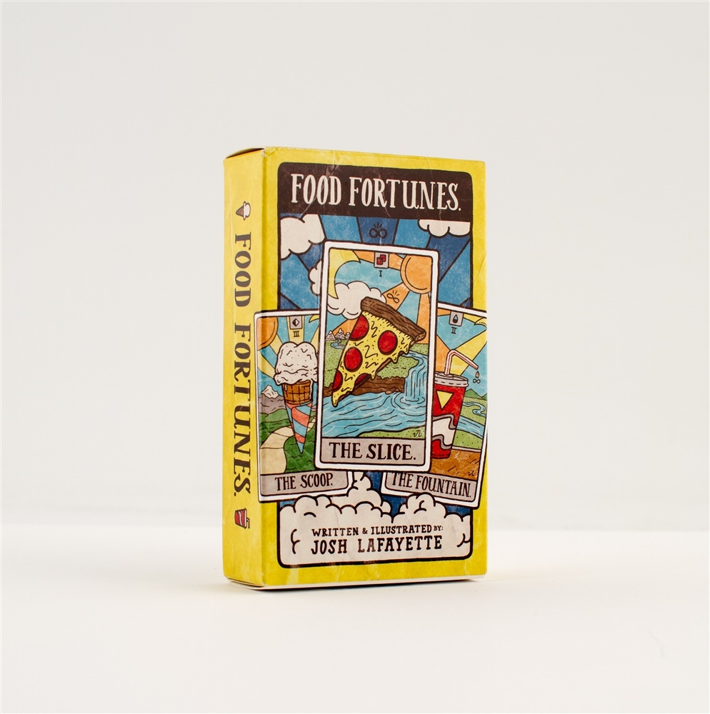 This playful take on tarot makes divining the sacred mysteries of "what's for dinner tonight?" a snap. Simply lay the cards out three at a time and voila—a meal appears, a vision from the spirit realm. This dining divination game can be played alone or with hungry friends to give apathetic appetites a mystical nudge in the right direction.