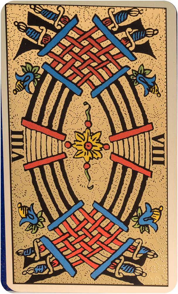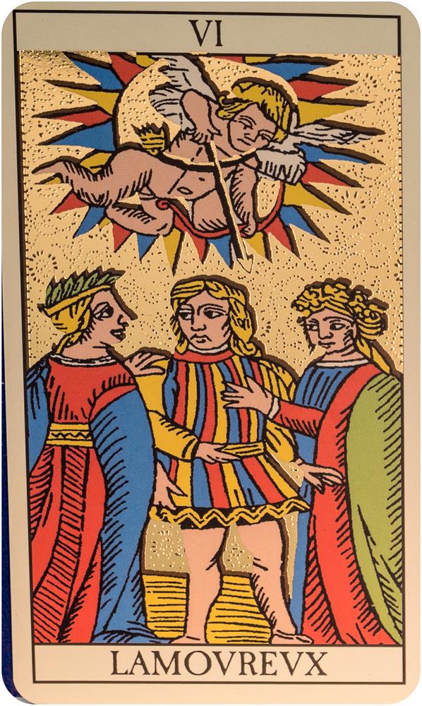 The line art has been restored from the original xylography made by Claude Burdel in 1751. The colors have been restored to the original brilliance and the cards have been enhanced with full gold impressions on every Arcana. This deck is the richest and most precious Marseille deck ever. With revised instructions and graphics.
