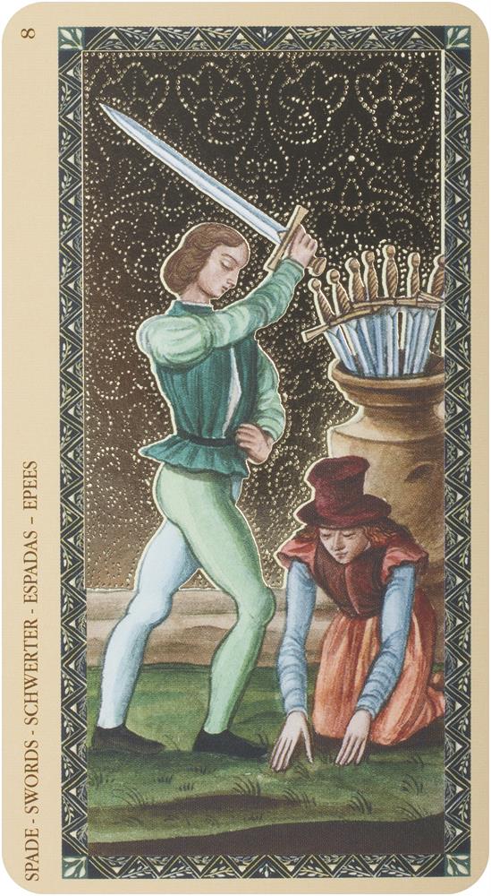 The antique deck of Charles VI, commonly known as the Estensi (Este Duchy) Tarot, is proposed here in its entirety, thanks to careful, in-depth historical and artistic research. A very valuable work featuring embossed water-colored cards enriched with golden laminate.