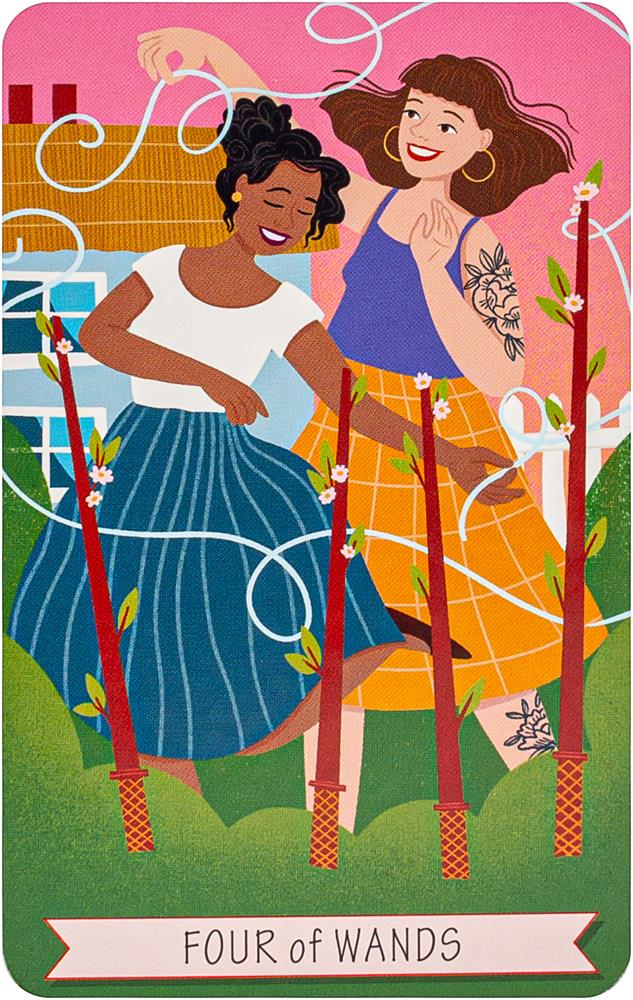 Pamela Colman Smith s beloved tarot artwork, created in 1909 under the direction of Arthur E. Waite, is now presented in a borderless format for a more immersive reading experience. This 84-card deck includes four extra cards with reproduction samples of Pixie s non-tarot artwork, including two watercolor paintings Catch Me and Duet ; the Lovers illustration from the play Deirdre; and an illustrat