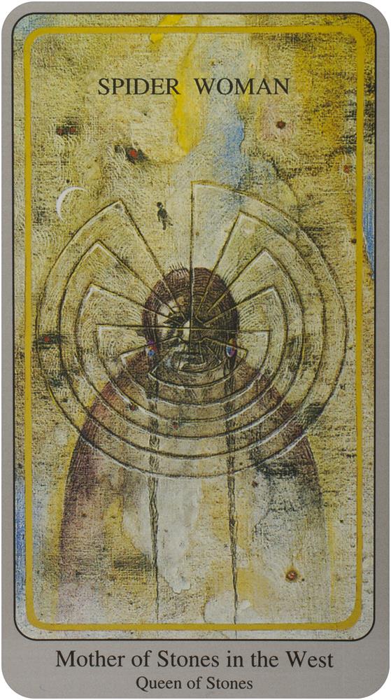 The captivating artwork of Haindl Tarot is non-traditional, yet the deck does follow the structure and meanings of the Rider-Waite deck for the most part, with some references to the Thoth Tarot. Each Major Arcana card shows kabbalistic, runic, and astrological associations. In the Minor Arcana each court card is represented by a god or goddess. The four suits are Wands -- Hindu; Cups -- Celtic and Norse; Swords -- Ancient Egyptian; and Stones -- Native American.