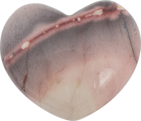 Hjärta av mokait, storlek cirka 40 x 45 cm. Ett kort medföljer som berättar om stenens egenskaper.