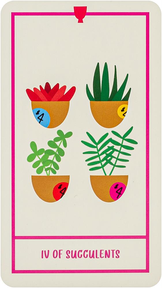 Whether you’re growing a personal rainforest of plants or raising a smaller, more modest plant-family, the Houseplant Tarot deck is here to help you use your passion for houseplants to get in touch with your own intuition. This modern take on the traditional 78-card Rider-Waite tarot deck combines authenticity and respect for the traditional themes and interpretations of tarot with a bit of plant-parent humor, and includes thoughtful interpretations like:
