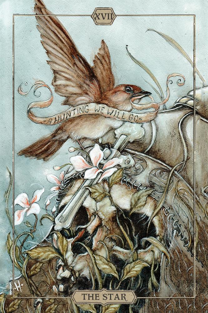 Hush Tarot beckons readers to explore an alluring world where animal and human spirits are unified, and even the smallest creatures like ravens and hares have great significance. At times, they appear lost in the weeds but there is always a hidden clue guiding them to the way out. The fascinating characters and landscapes are illustrated with lush detail inspired by a 19th century aesthetic that explores natural forms in various states of life and decay. Hush Tarot offers a shift in perspective that reveals profound answers to life’s mysteries.