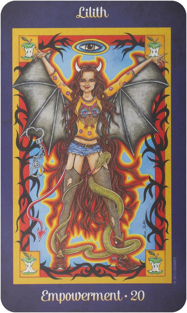 A round, mostly black and white deck with two lurking splashes of color, The Gorgon's Tarot is an innovative and inspired way to read the tarot. With Dolores Fitchie's discreet, tongue-in-cheek humor, it's also engaging and fun to read! The traditional 78-card deck is complemented by an additional Major Arcanum card, The Blind Gorgon. This card can be used in a reading as a "wild card," as what so