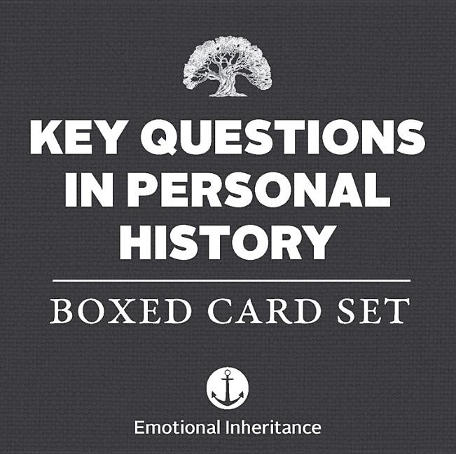 Our individual memories define us. Our tribal memories unite us. Emotional Inheritance works with psychologists, writers and historians to provide a premium interview and life story production service. Now, this boxed set of 100 cards provides simple effective questions to help you undertake this process yourself, without an external interviewer. Questions are grouped into categories such as ‘Early Childhood’, ‘Adulthood’, ‘Marriage and Parenthood’, ‘The Future’ and ‘Leaving Advice’ so that a structured narrative and lasting legacy can be created from the interviewee’s answers.