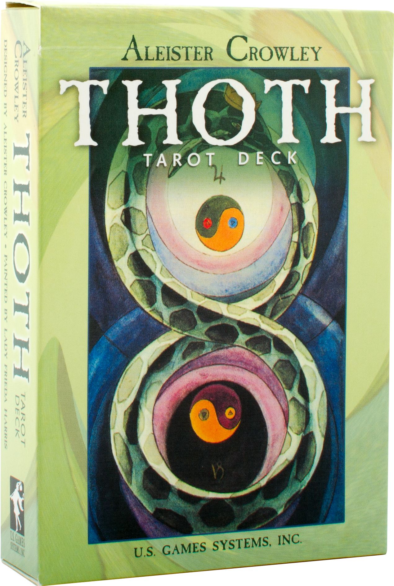 The cards were painted by Lady Frieda Harris according to instructions from the occult scholar, Aleister Crowley. The magnificent art deco work contains kabalistic and astrological attributions described in Aleister Crowley’s Book of Thoth.