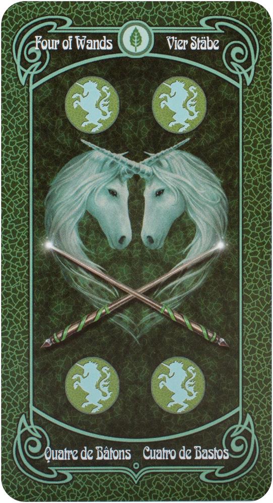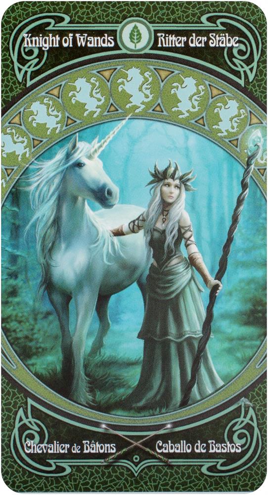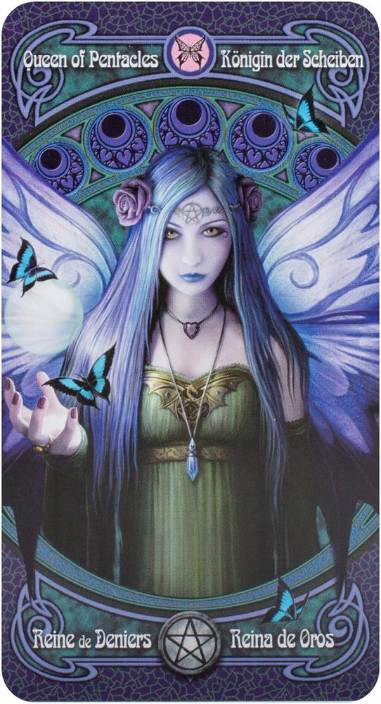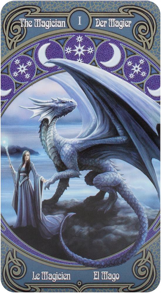 Renowned worldwide for her breathtakingly beautiful fantasy artwork, Anne Stokes delights fans yet again with this gorgeous tarot deck. This exquisitely crafted deck offers a compelling gothic twist on the traditional Rider-Waite-Smith suits. The wands are themed to mighty dragons. Cunning vampires have replaced the cups. Skeletons stand in for pentacles, and the swords have become angels. Use thi