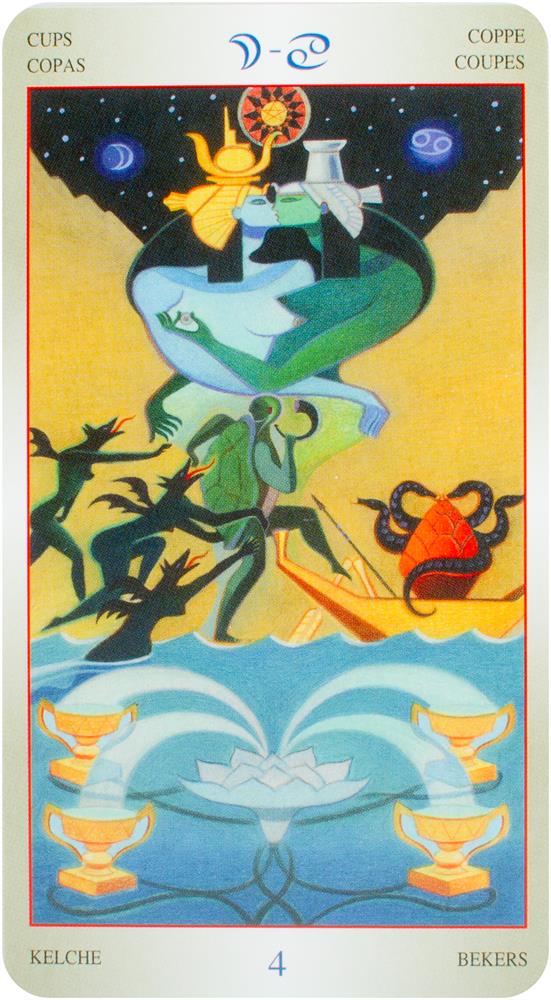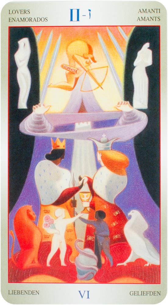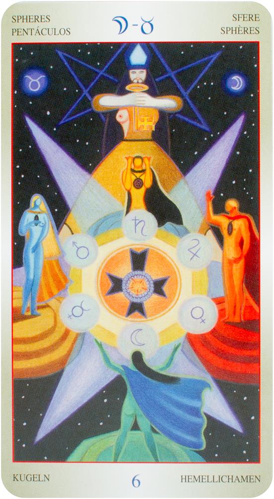 These Tarots are the result of complex, in-depth research undertaken by Roberto Negrini, an expert on the Book of Thoth and its evolution. The painter Andrea Serio has transposed the results of this amazing work by Negrini onto the illustrations, in an effective synthesis of art and magic. These cards are inspired by the hermetic tradition of the Egyptian Decans, the astrology of Golden Dawn and the "Book of Thoth". 78 cards, 66x120mm