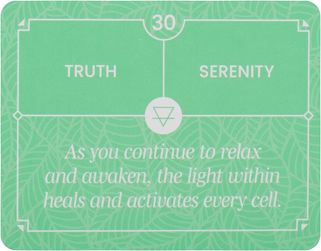By not taking life too seriously, and being grounded and present, your inner serenity-lightness of being will lighten and activate truth and peace within others. This card deck is about activating seven sacred-human embodiments: divine will, omniscience, universal love, epiphany, forgiveness, truth, and grace, and then living as a divine offering, embodying a love of life itself.