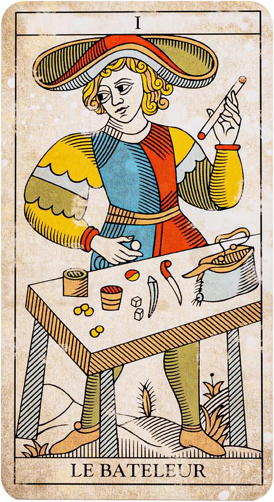 The Marseille Tarot, in vintage edition. This is the feeling of tradition. The feeling of time-worn cards, handled by generations of rough hands, shuffling, playing, reading with the Arcana.