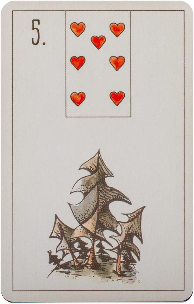 Maybe Lenormand honors the Lenormand tradition with stylized illustrations that convey the core meaning at the heart of each card. Expanding the 36-card Petit Lenormand, designer Ryan Edward has created 16 additional cards to complete a 52-card pack, following the heritage of fortune telling cards based on playing card decks.