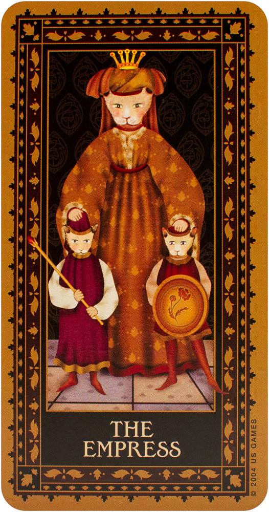 The glory of felines is celebrated with Renaissance flair! This ornate deck seeks to bridge the gap between past and present by blending classical and contemporary ideologies along with artistic styles. The result is an aristocratic deck with a humorous twist. Includes 48-page booklet of instructions.