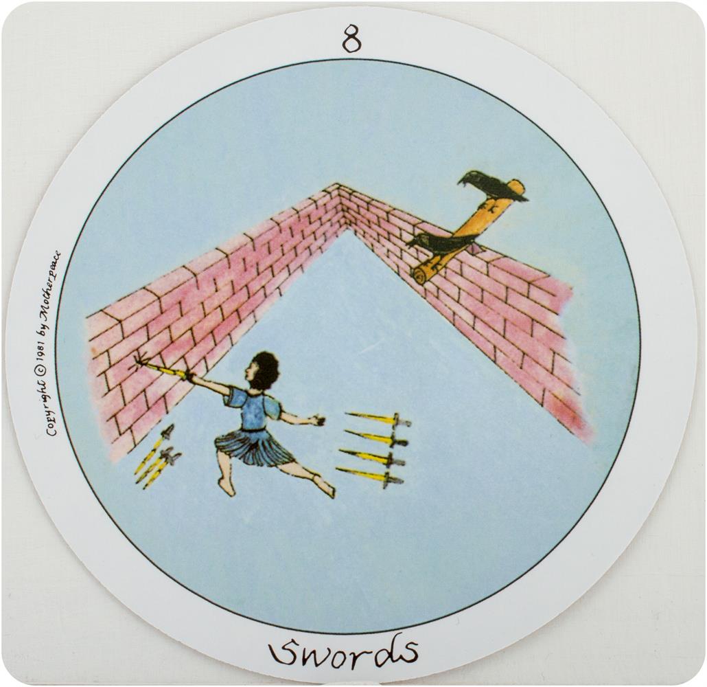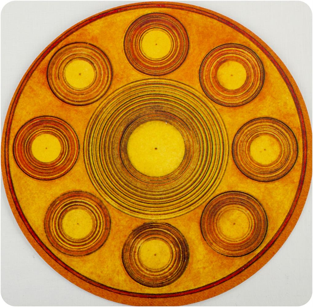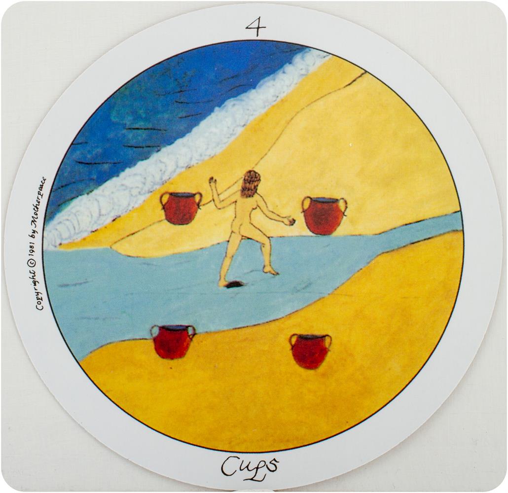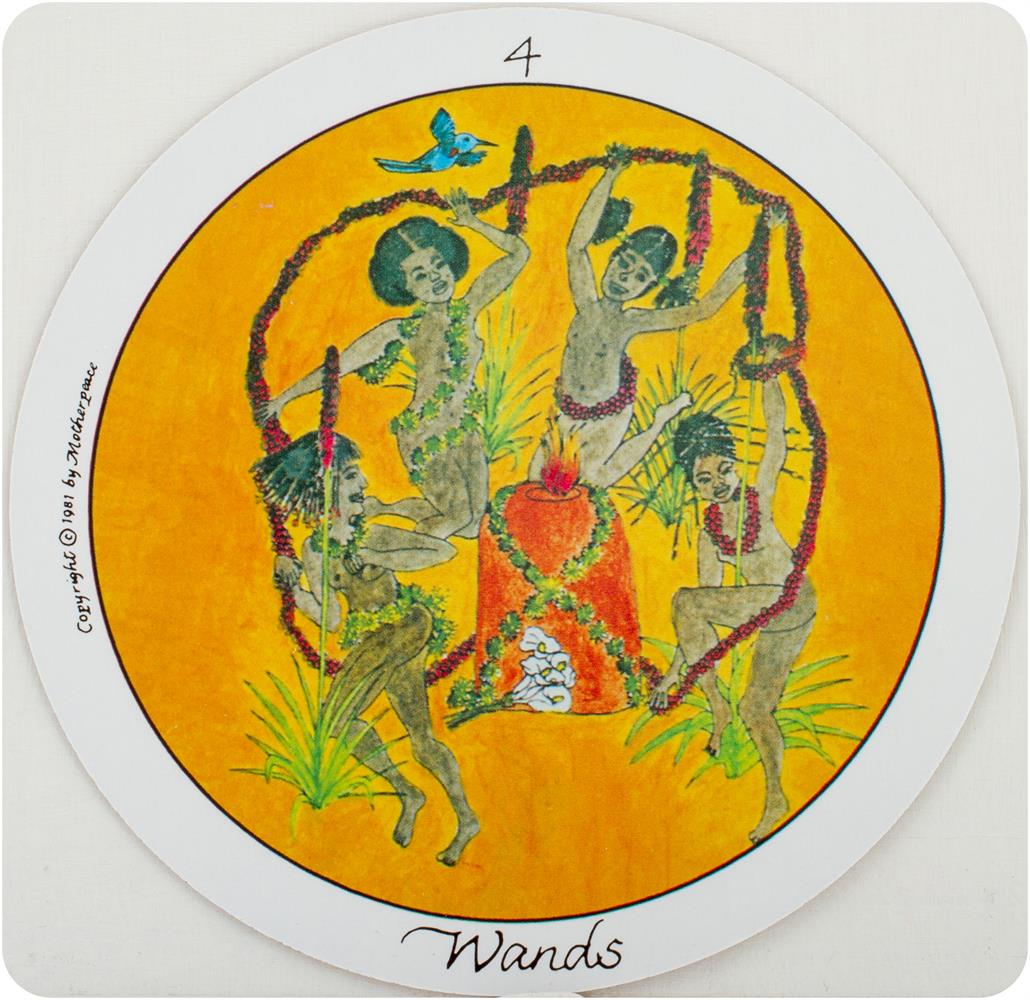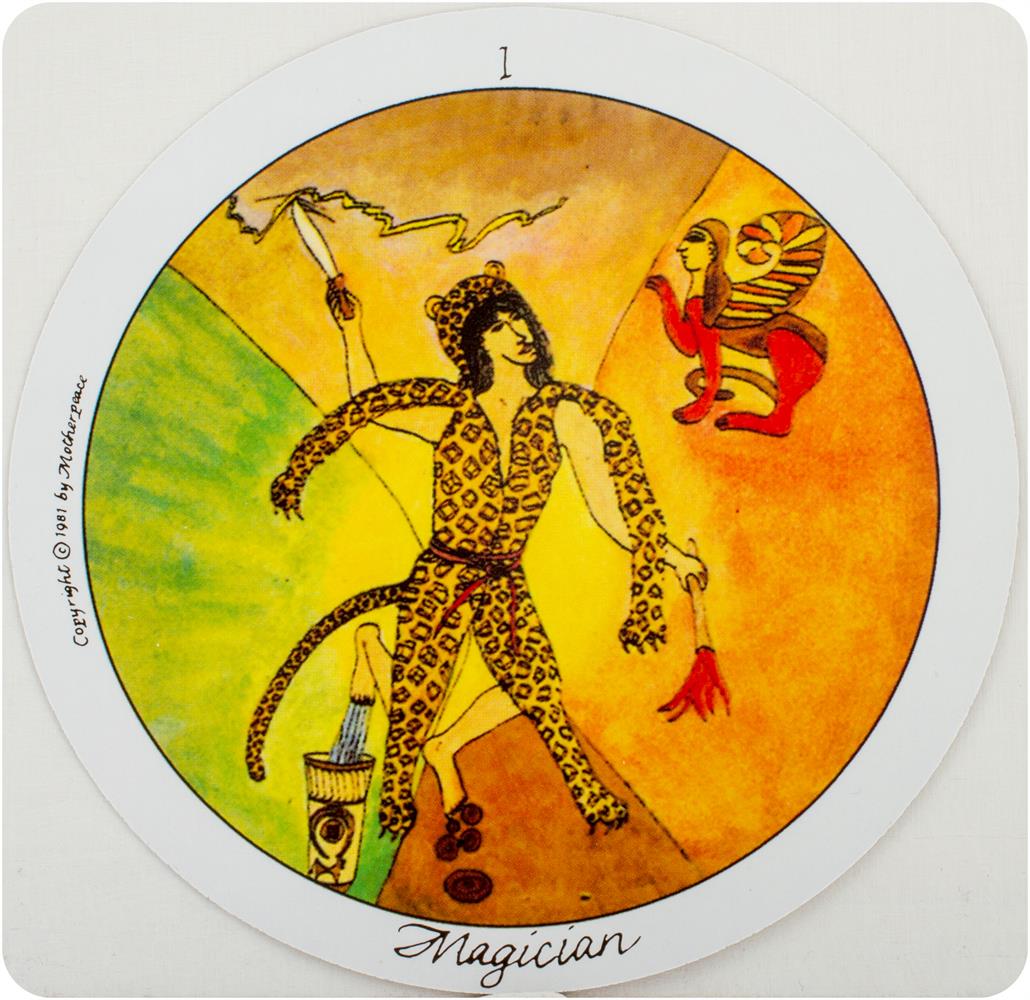 The cards in this extraordinary round tarot deck are gestalt circles of powerful symbols celebrating 30,000 years of women's culture throughout the world. 4 1/2" diameter.