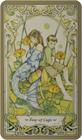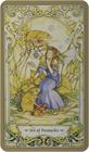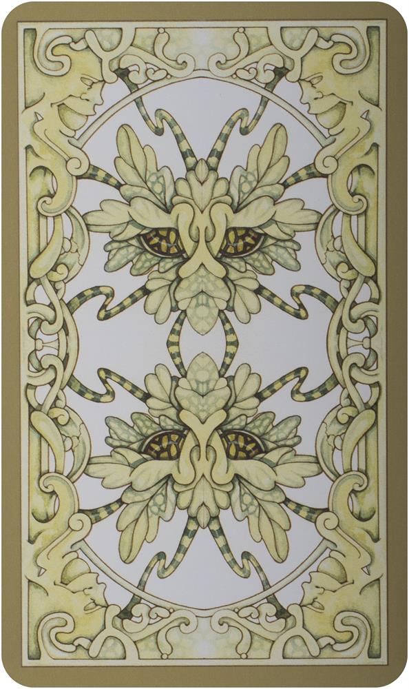 The scenes on each card are reminiscent of medieval stained glass associated with majestic cathedrals. Each card touches the subconscious in a profound way, and the spiritual and inspirational imagery brings the viewer to a higher level of consciousness. The wardrobes of the figures are resplendent in color and historic detail, and the scene on each card is luminous. The cards include symbols that