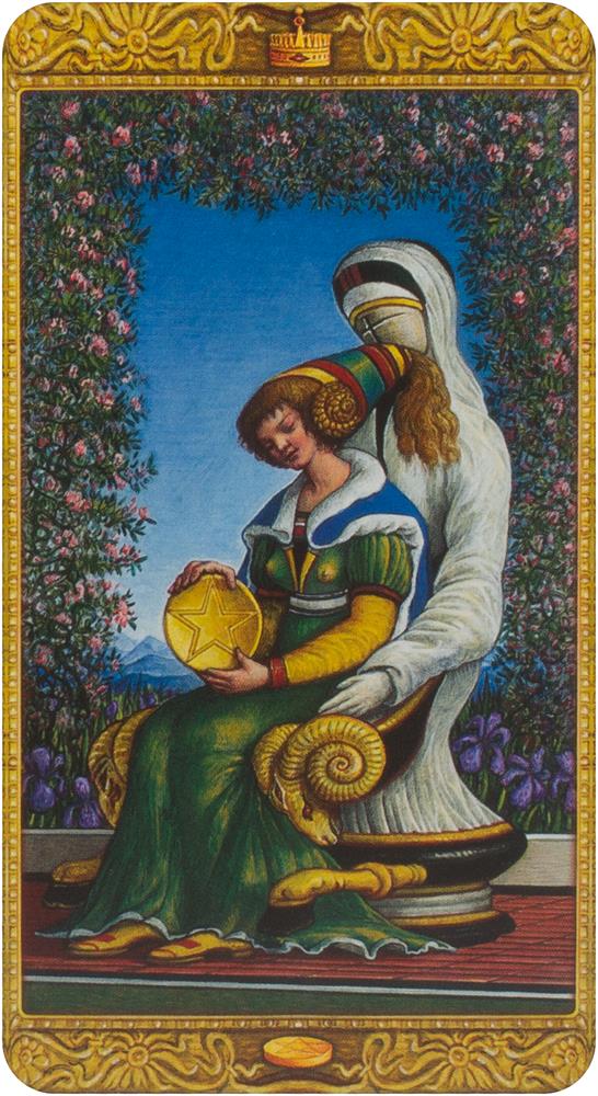 Oil painted one by one on wood, each of these Arcana is a masterpiece on its own, a secret chalice overflowing with the Italian Tarot tradition of mystique and painting technique.
