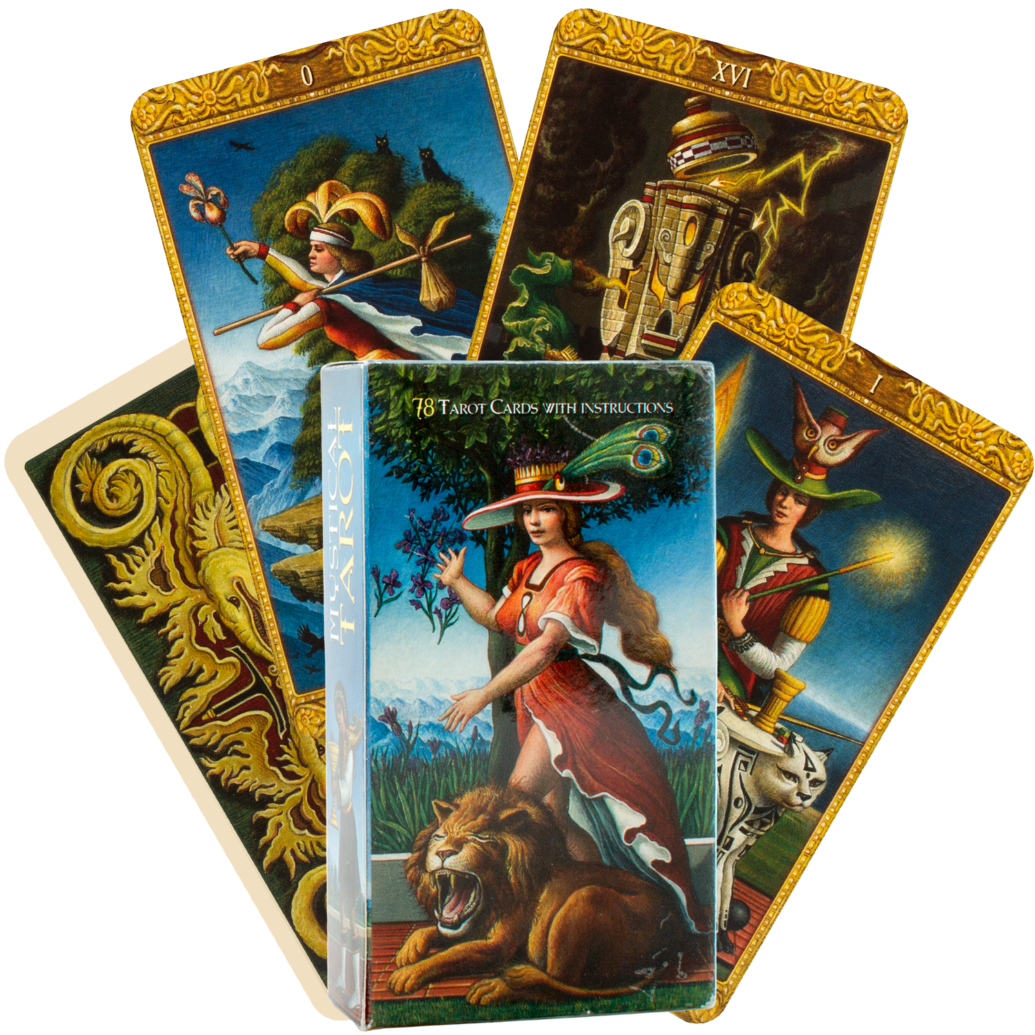 In the MYSTICAL TAROT, ancient tradition meets modern vision. Symbols, magic and esotericism of the ancient arts have been absorbed by the artist and scholar in order to be moulded anew in a design of great, alchemical beauty.