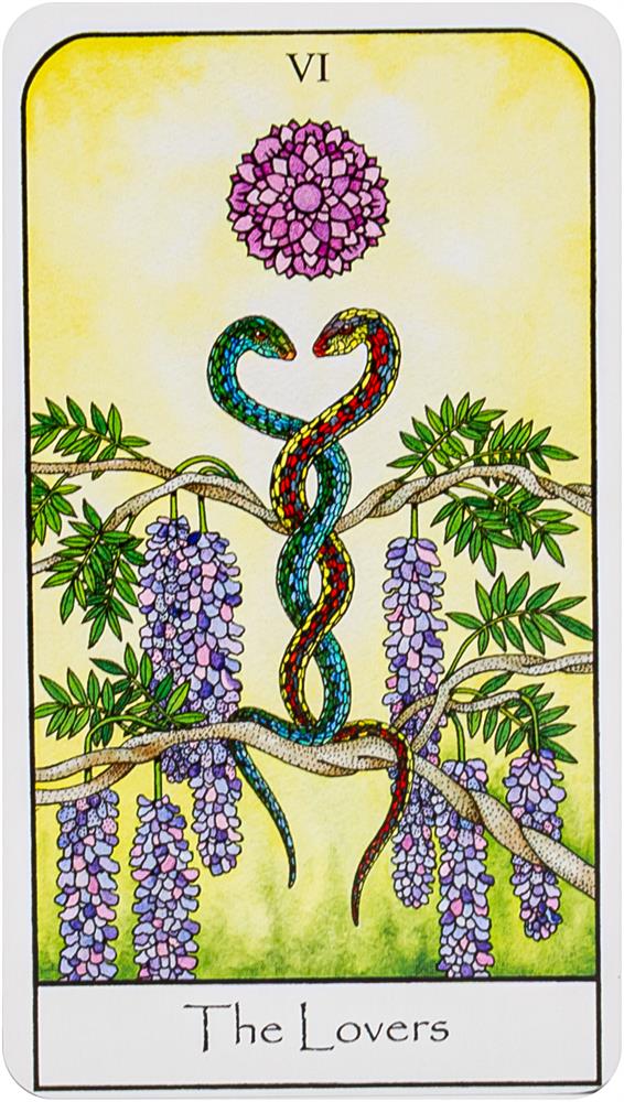Drawn to the timeless and enduring messages of the Tarot and its ability to help us explore the depths of the psyche, Herzel carefully researched the inner esoteric meaning of each card and then artfully interpreted that meaning in hand-painted watercolors featuring the colorful language of flowers and symbolic images of plants, birds, insects, reptiles, and gemstones. The symbolism of each card is derived from various traditions of the world, including Native American, Celtic, and Eastern and Western Philosophy.