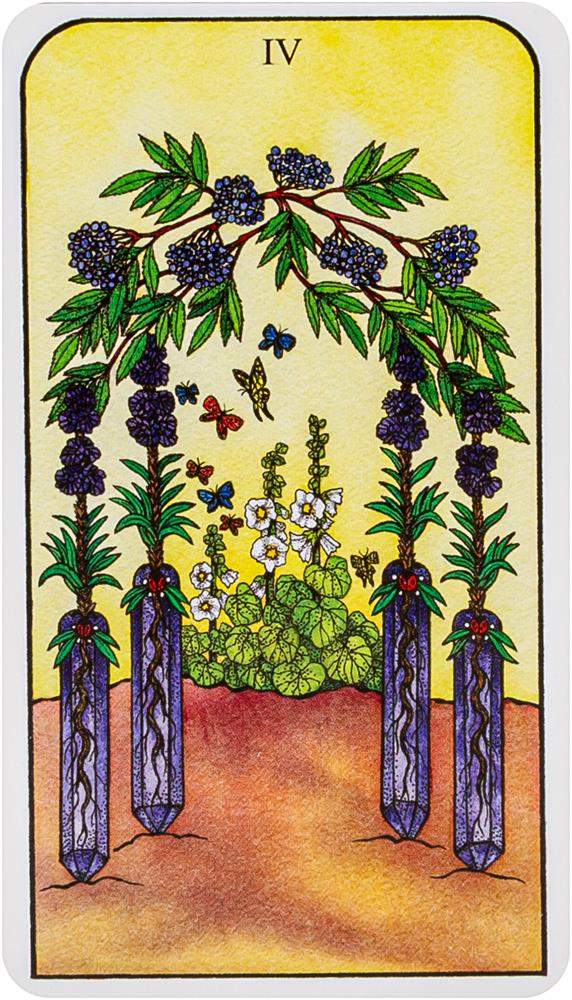• Includes the complete Major and Minor Arcana of the Tarot interpreted through symbolic images of plants, birds, insects, reptiles, and gemstones