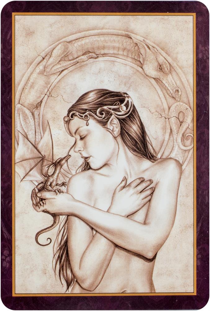 In the not so faraway past, we were Gods and Goddesses...we dwelt in dimensional lands...Eden, Avalon, Ys, Atlantis and Mu...we were fully alive and fully magickal. We worked, loved and lived with all the elemental beings...but as time wore on, we were torn away from our strongest, most protective kin, the Dragonfae. Now they are returning to help us heal ourselves and save this sacred planet. This deck is a dimensional portal to allow them to re-enter our realm and deliver their powerful messages of love, healing and protection for a new generation of magickal beings...