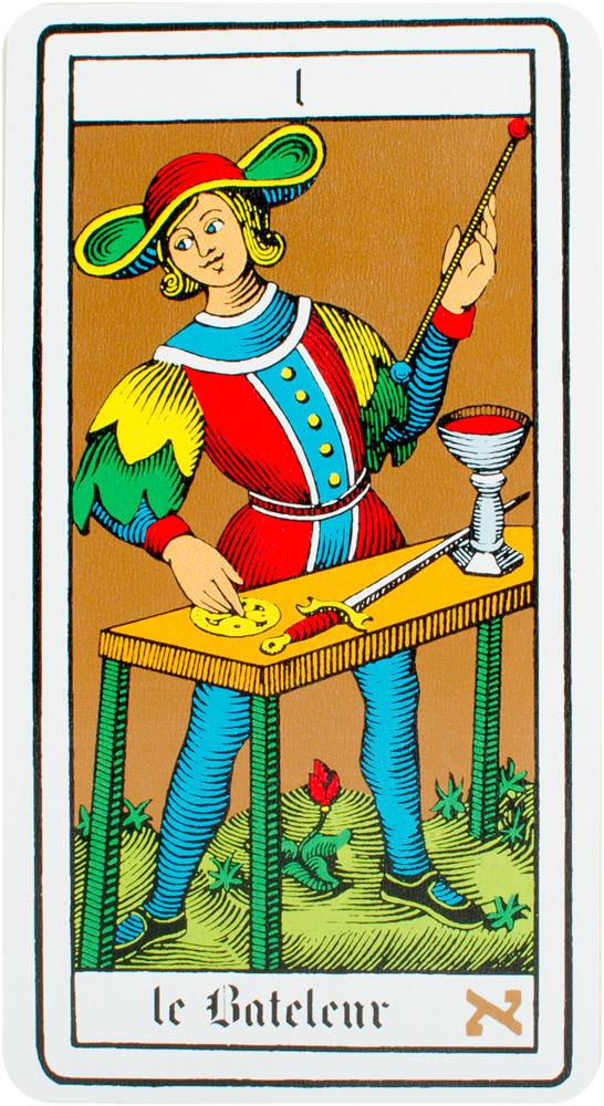 This historical tarot deck, created in the Marseilles style, is based upon the original designs by famous Swiss kabbalist and occultist Oswald Wirth. The 22 Major Arcana first appeared in 1889 in a hand-colored limit edition deck. The 22 Major cards have French titles and the Hebrew letters attributed to each card by Eliphas Levi, and popularized by Oswald Wirth.