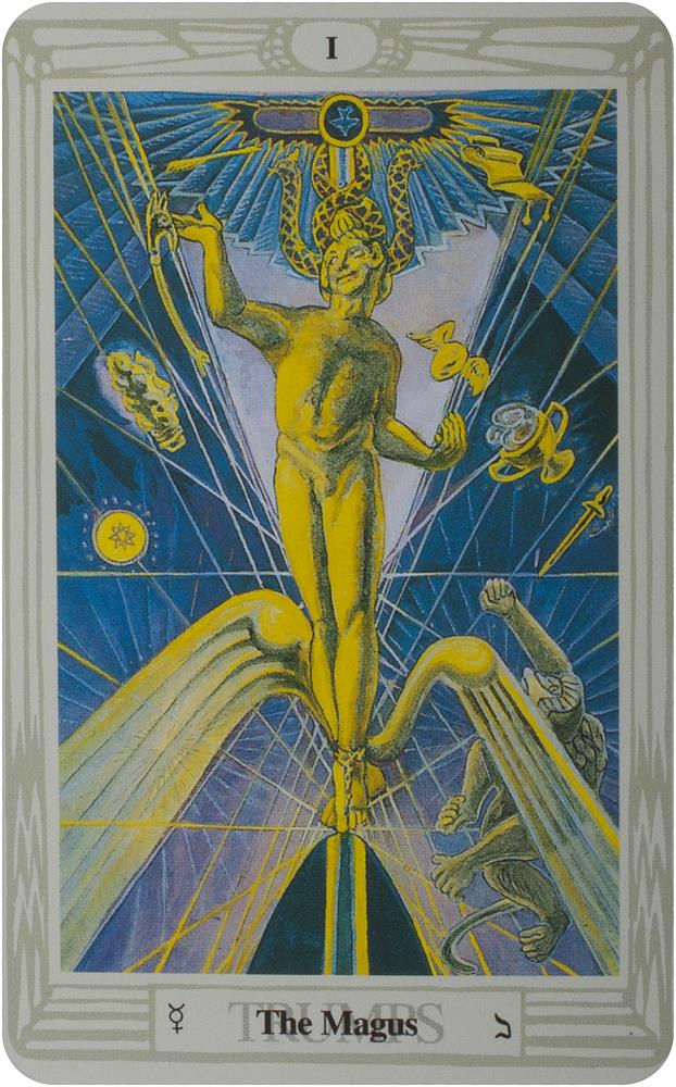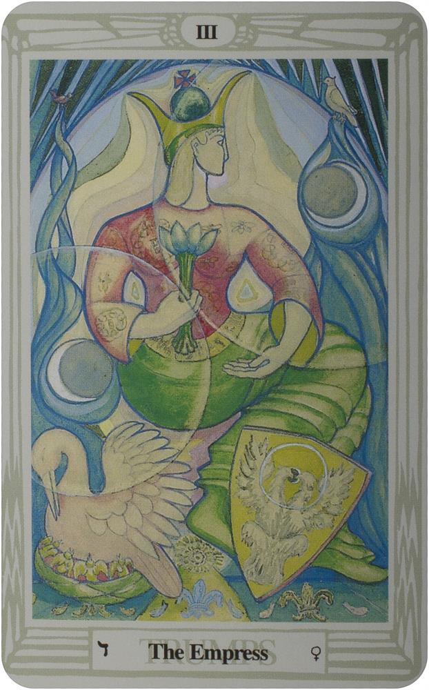 The cards were painted by Lady Frieda Harris according to instructions from the occult scholar, Aleister Crowley. The magnificent art deco work contains kabalistic and astrological attributions described in Aleister Crowley’s Book of Thoth. The stunning art deco artwork of the Thoth is rich in Egyptian symbolism.