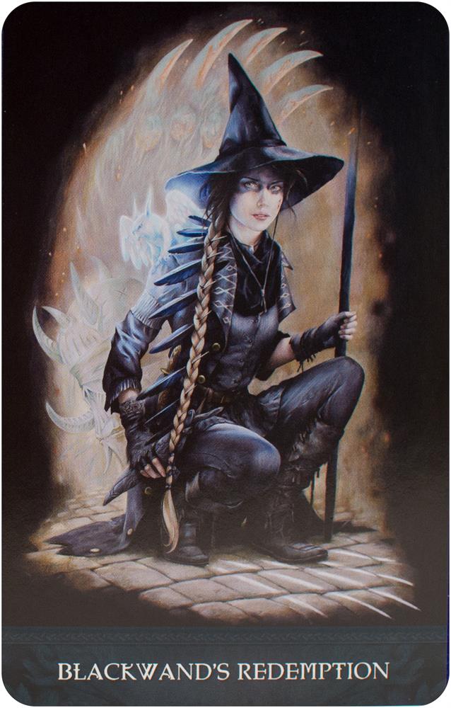 Inspired by Steven Hutton's popular Dark Raven Chronicles Trilogy, Raven's Wand Oracle draws insights from the tale of a mysterious black wand, brave young Kolfinnia, whose fate it is to save witchcraft, and the sage old witch Valonia who counsels that mind creates matter. Other witches you will meet in the Wildwood–coven include Rhia Winsome, who shares her creative energy, Ada Crabbe, the senior gardener, Oceana, and the dragon twins Hethra and Halla. Each member of the coven has important life lessons to offer.
