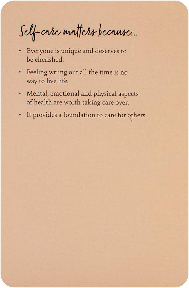 These cards show you how to reflect, find perspective and take time for yourself. With prompts, thoughtful tips and positive quotes on each card, learn how to cultivate self-care, untangle your busy life and embrace your well-being.