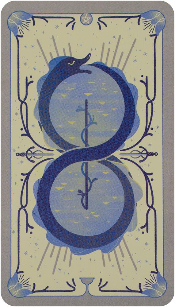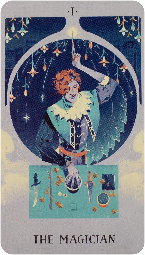 The mystical, fantastical world of Dioscoria and the art nouveau/comic style of art breathes life into familiar Major Arcana imagery and court cards, while the Minor Arcana is a simplified and elegant contrast in the pip style.