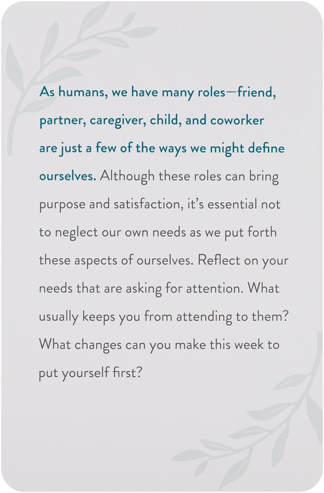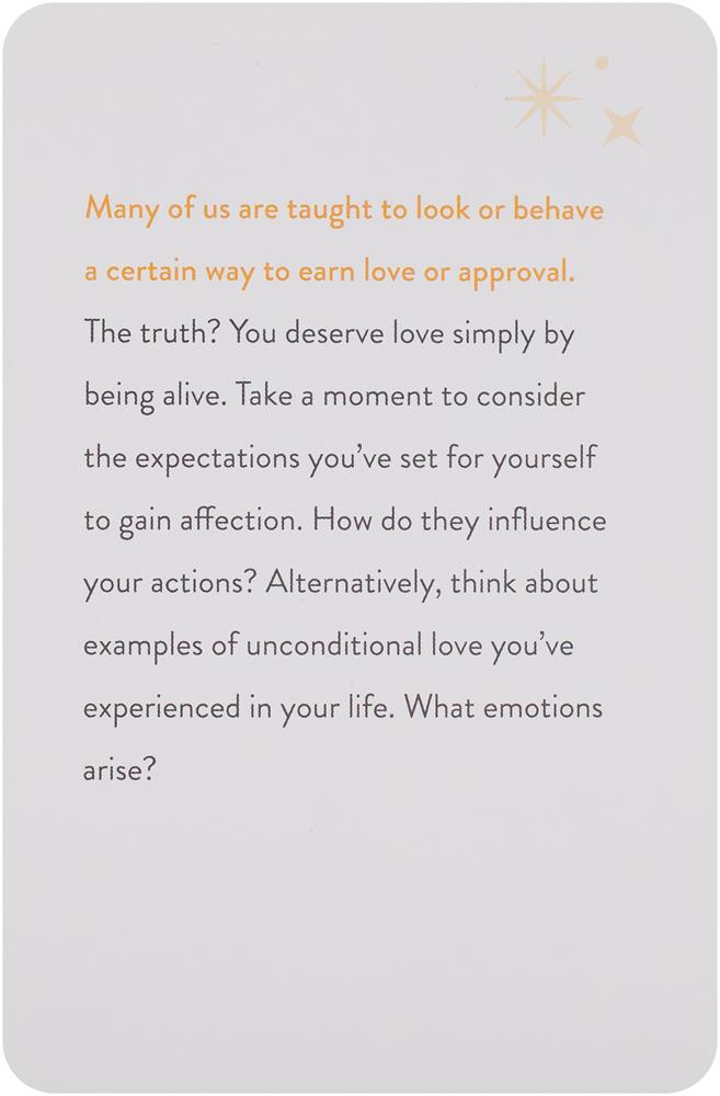 •       52 cards with empowering affirmations to encourage positive self-talk and establish a ritual of sitting compassionately with yourself.