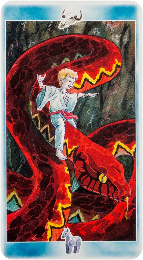 This deck, which follows the ancient teachings, is aimed at all modern Shamans who wish to regain a more authentic relationship with themselves and with the Spirit of the World. Dance, Voyage, Combat and Healing are the four phases through which the Shaman enters into communication with the spirits and attains knowledge and power to heal him/herself and others.