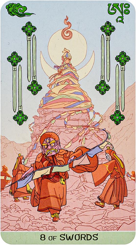 Inspired to the life and teachings of Siddhartha Gautama - Buddha, not as an historical figure, but as one of the many potential Buddha - and other Bodhisattva (people who have reached enlightenment), the tarot deck is a journey toward your higher self. The constant human anxiety of living and self-searching can only be conquered through enlightening.