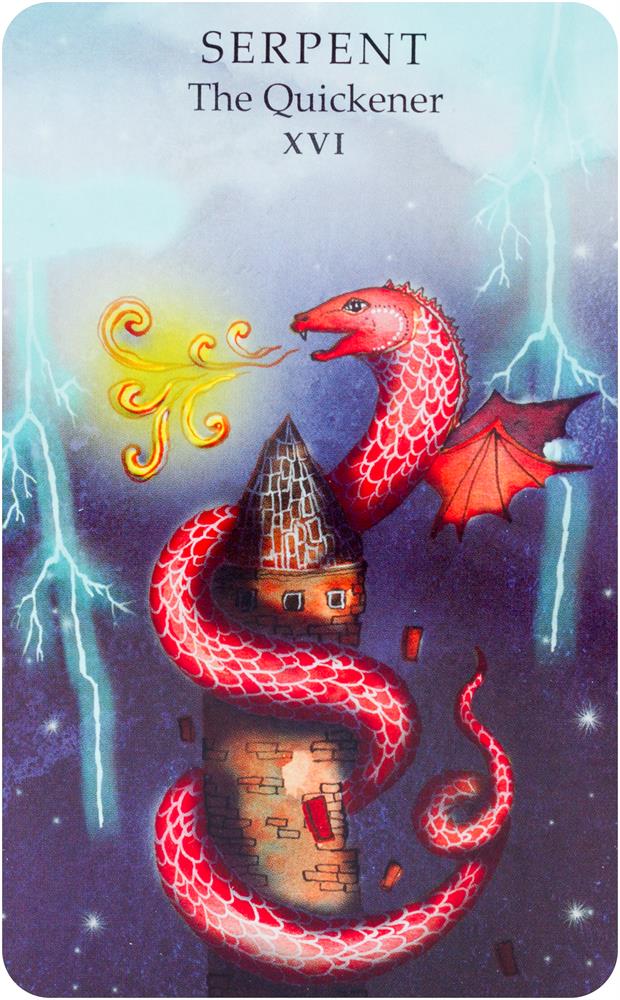Featuring high-energy art that pops with bold colors and fiery motifs, Ricardo Cavolo’s Tarot del Fuego is a deck that invites you deep into the heart of the spirit in a unique way. With rosy-cheeked figures and omnipresent eyes of fire, nothing escapes the notice of one who reads with this adventurous deck.